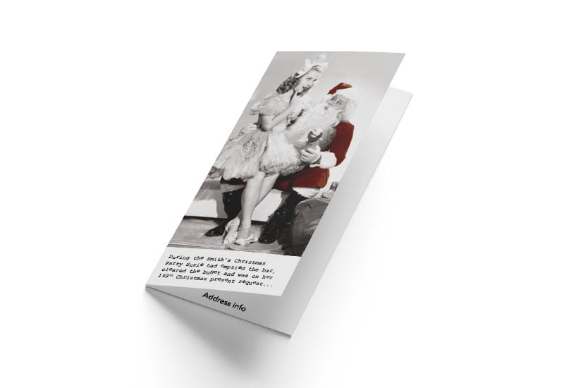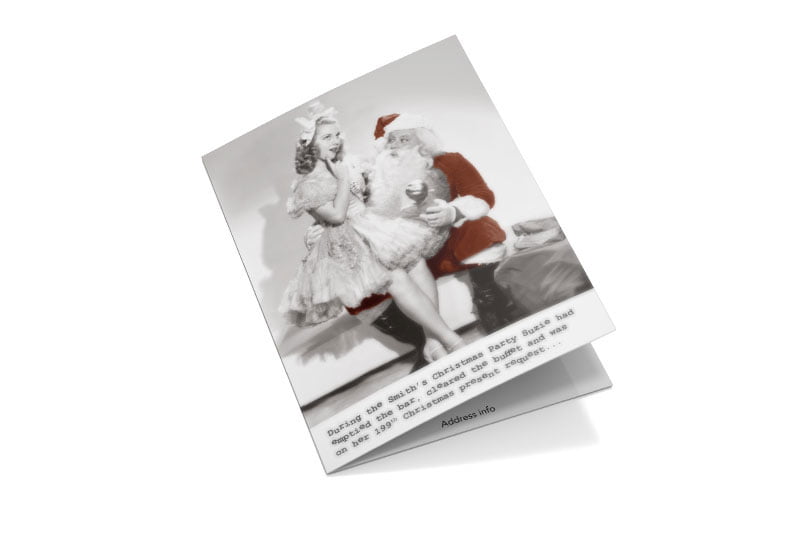 We personalise your Cheeky Christmas! card to make it unique to you. Simply upload or email your company’s details, logo, signatures and your personalised greeting. Your Christmas Card proof will follow and once approved will be ready in no time!