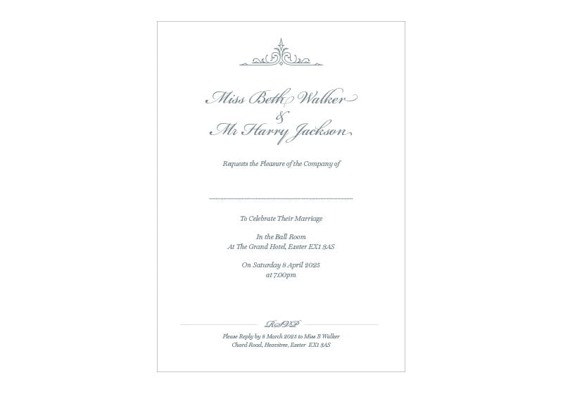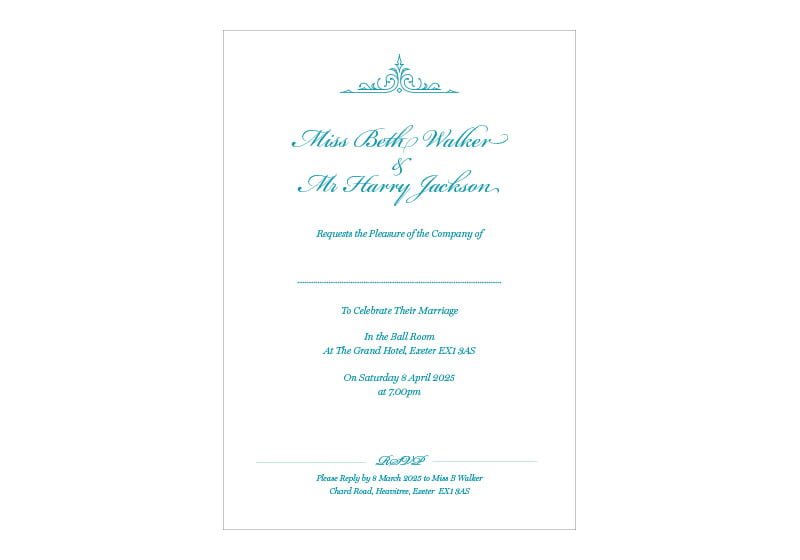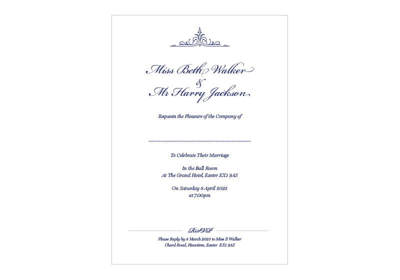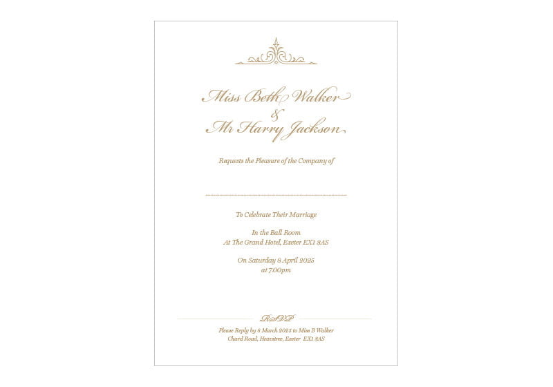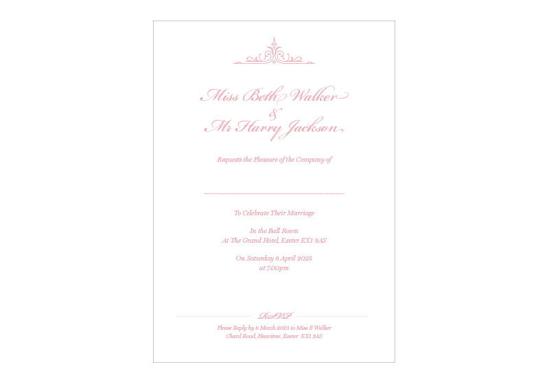 Simply send us your names, dates, venue and RSVP details and we’ll do the rest.