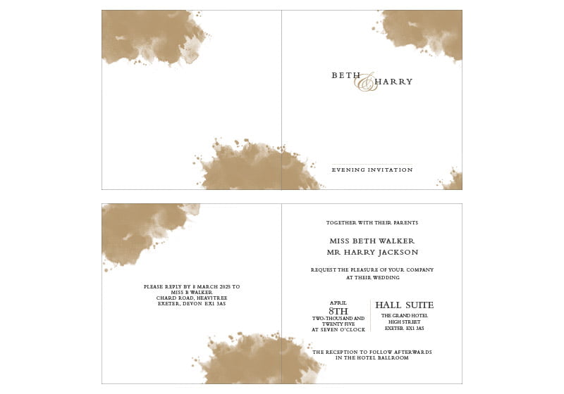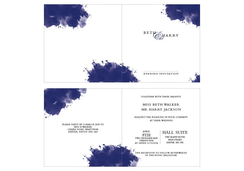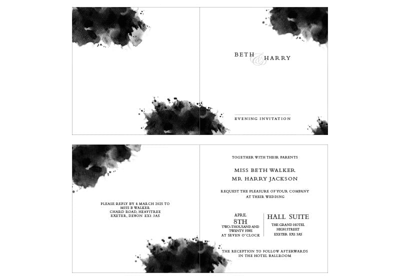Simply send us your names, dates, venue and RSVP details in the order notes box and we will do the rest.