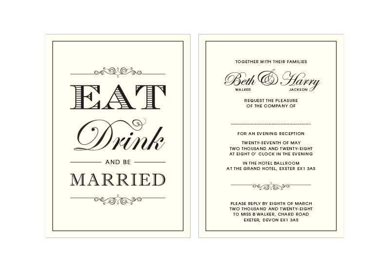 Simply send us your names, dates, venue and RSVP details and we’ll do the rest.