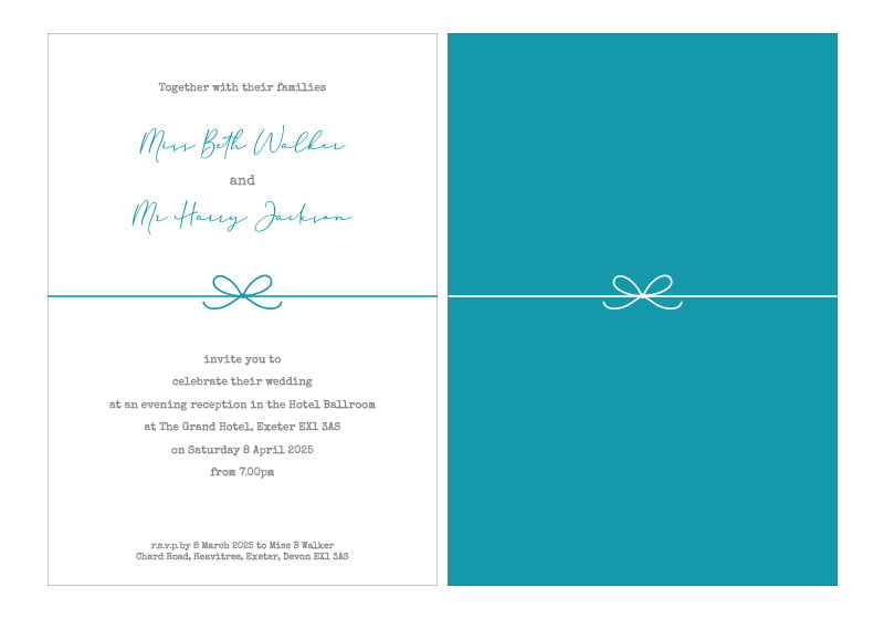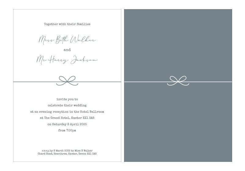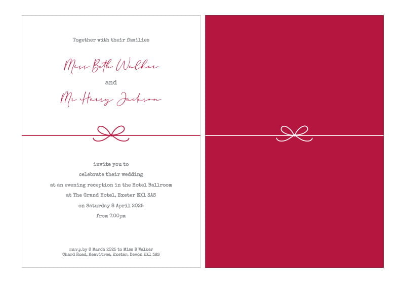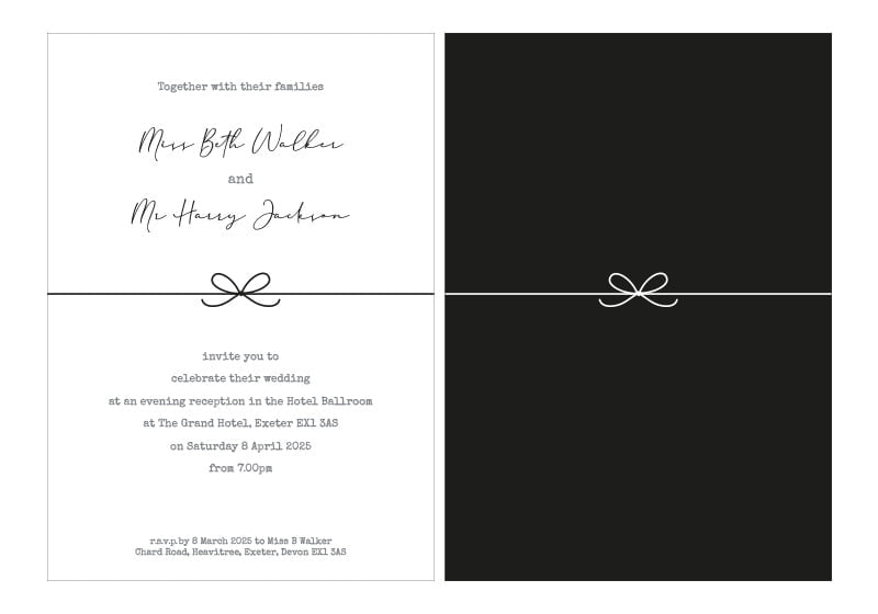 Simply send us your names, dates, venue and RSVP details and we’ll do the rest.