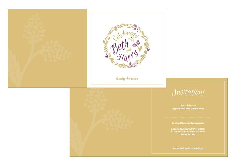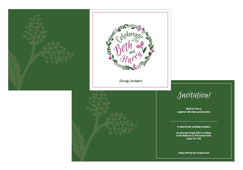 Simply send us your names, dates, venue and RSVP details and we’ll do the rest.