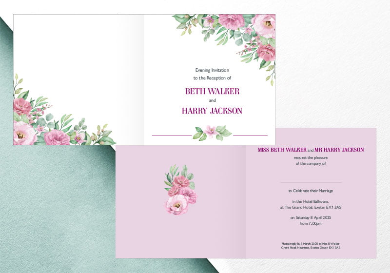 Simply send us your names, dates, venue and RSVP details and we’ll do the rest.