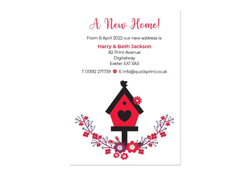 Available in your choice of colours and printed on our premium 350gsm satin paper, supplied with envelopes. Send us your new address text and image if required, receive your proof and once approved your cards will be ready in no time!