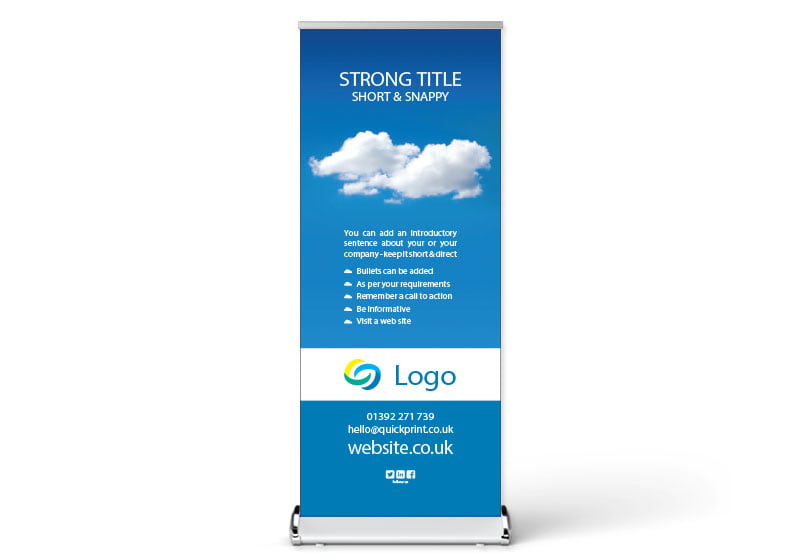 Roll-Up Banners are the perfect solution for those needing to display in various locations – easy to assemble, portable and lightweight, these banners are a must for exhibitions and pop-ups. Supplied with a free carry-bag for effortless transport.