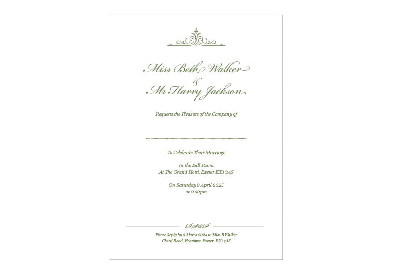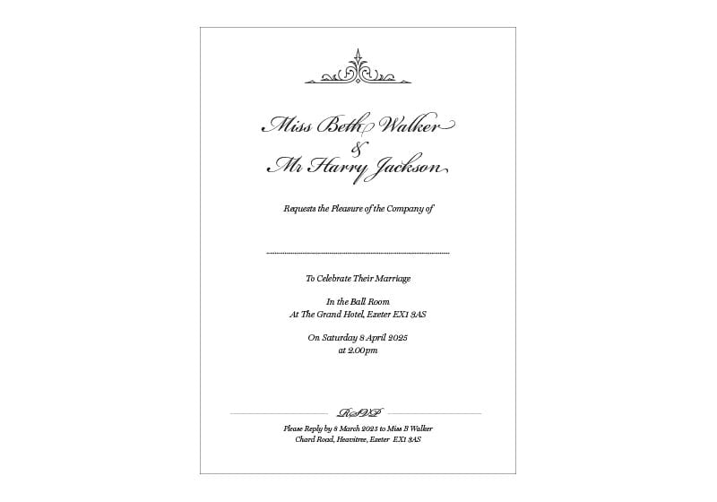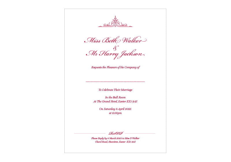 Simply send us your names, dates, venue and RSVP details and we’ll do the rest.