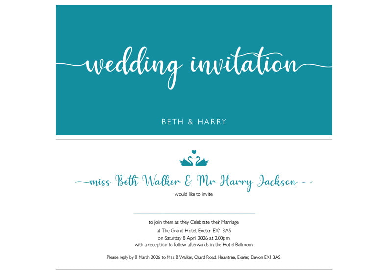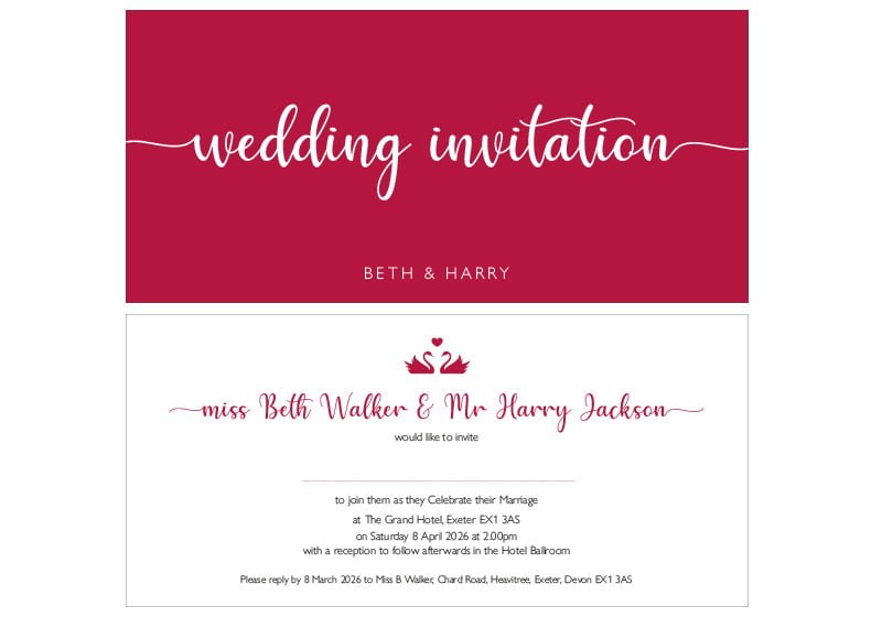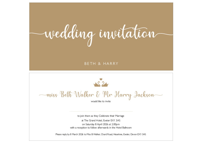 Simply send us your names, dates, venue and RSVP details and we’ll do the rest.