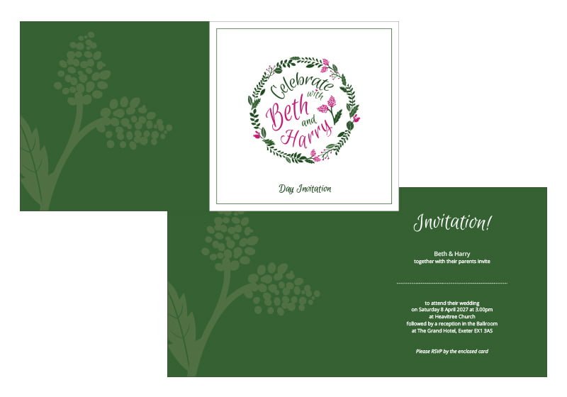 Simply send us your names, dates, venue and RSVP details and we’ll do the rest.