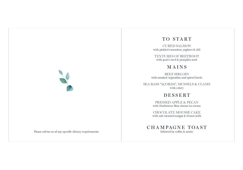 The Enchanting Elegance collection features an enchanting foliage arc and is printed on our premium 350gsm satin stock.