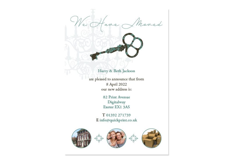 A beautiful, customised ‘We’ve Moved!’ card professionally designed and personalised to include your new address.