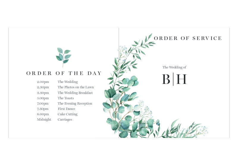 The Enchanting Elegance collection features an enchanting foliage arc and is printed on our premium 350gsm satin stock.