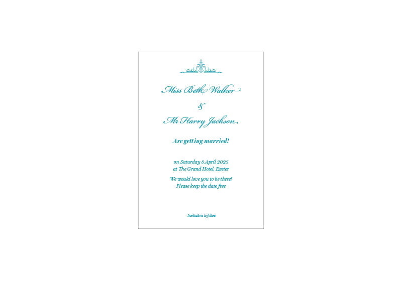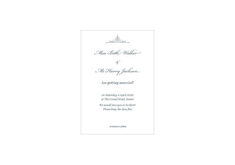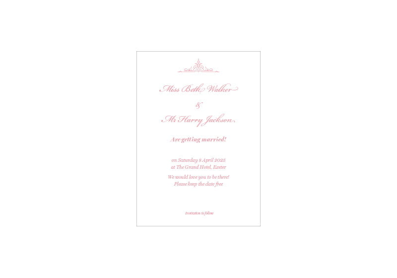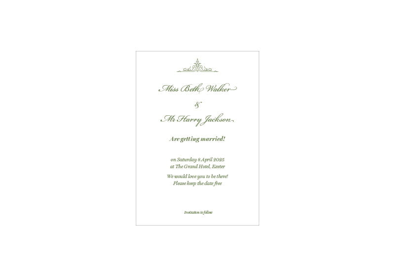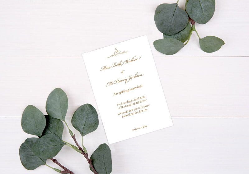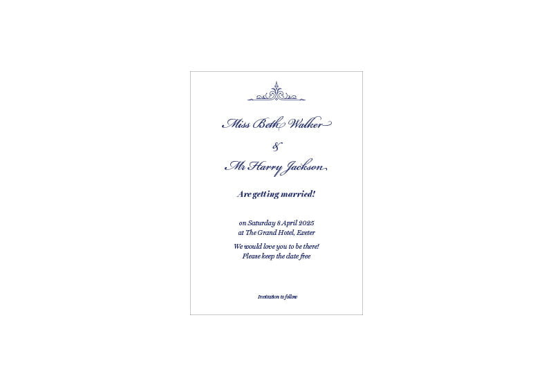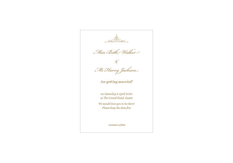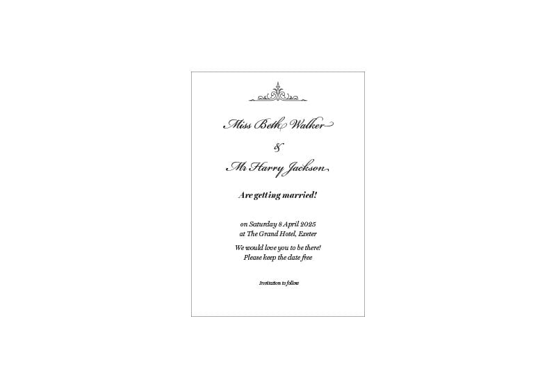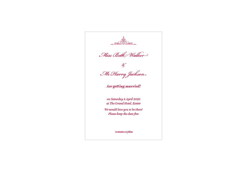 Simply send us your names, dates, venue and RSVP details and we’ll do the rest.