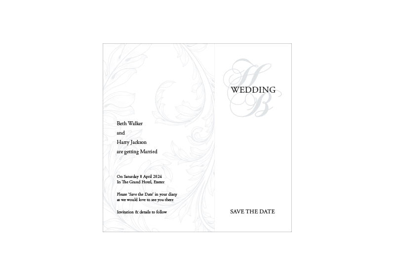 Simply send us your names, dates, venue and RSVP details and we’ll do the rest.