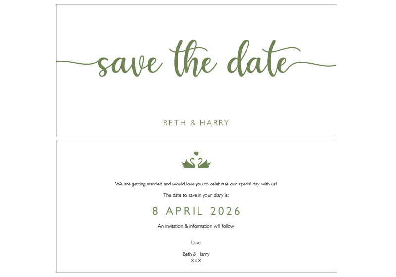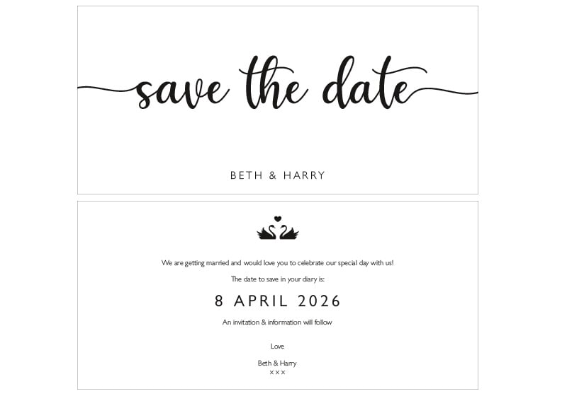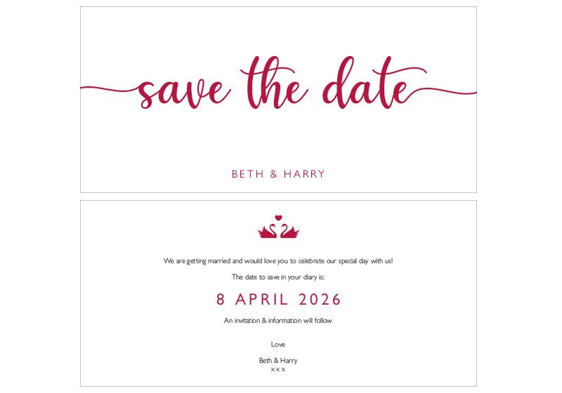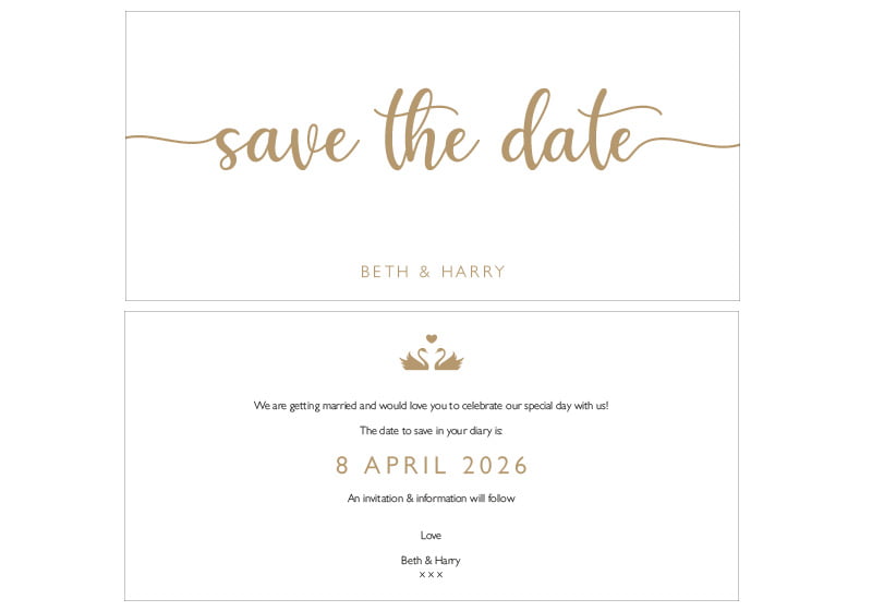 Simply send us your names, dates, venue and RSVP details and we’ll do the rest.