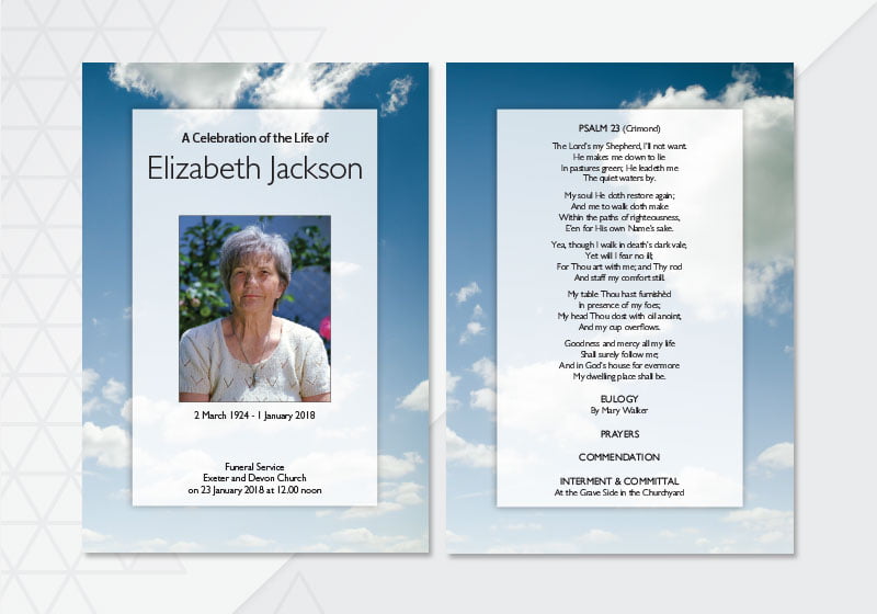 We offer an array of beautiful finishes for a unique document that you can treasure. Choose your preferred material and number of pages (4, 8 or 12 page booklet). Upload or send your images, hymns and service information and await your proof.