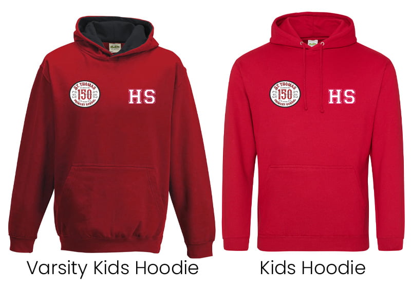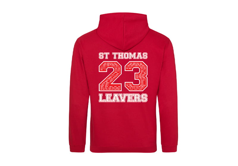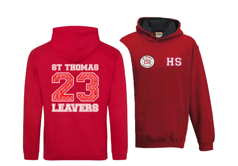 Leaving school is an important step in a child’s life, give them something to remind them of this milestone with a St Thomas Primary School Leavers Hoodie. Choose from a Kids Hoodie or Varsity Hoodie with the contrast inner hood.